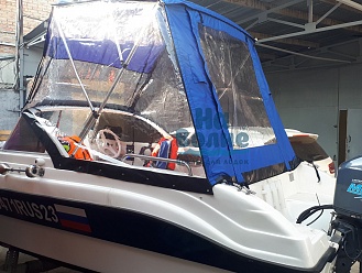 Прозрачные боковины и окно над ветровым стеклом обеспечивают отличный обзор и естественное освещение. Легкий доступ к кормовой части лодки через заднюю откидную дверь. Вентиляционные клапаны и боковые молнии обеспечивают комфорт и удобство. Чехол-банан для надежной защиты и удобного хранения.